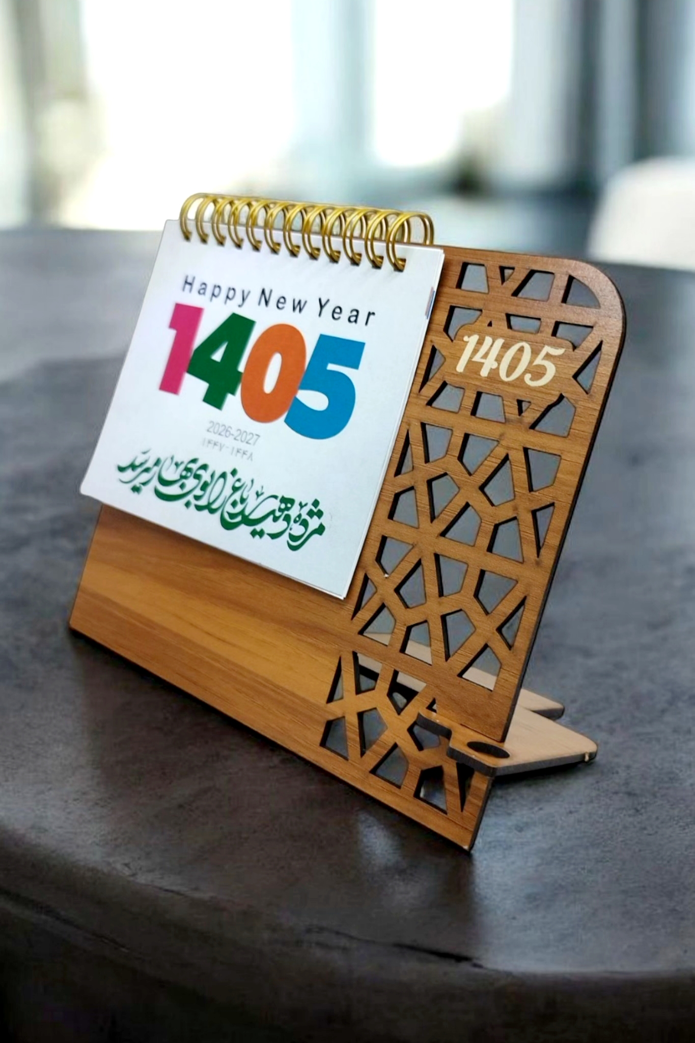 - تقویمهای رومیزی کلاسیک و مدرن با پایههای چوبی، فلزی یا مقوایی