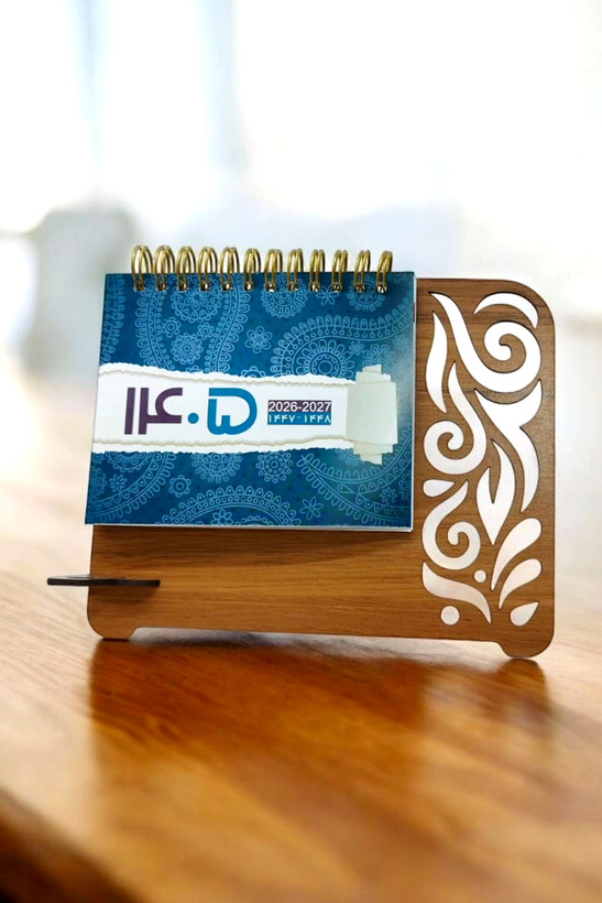 تقویم رومیزی ماهان از برند معتبر هلیا گیفت با پایهای چوبی و مقاوم طراحی شده است که علاوه بر کاربرد روزانه، جلوهای زیبا و مدرن به میز کار یا خانه شما میبخشد.