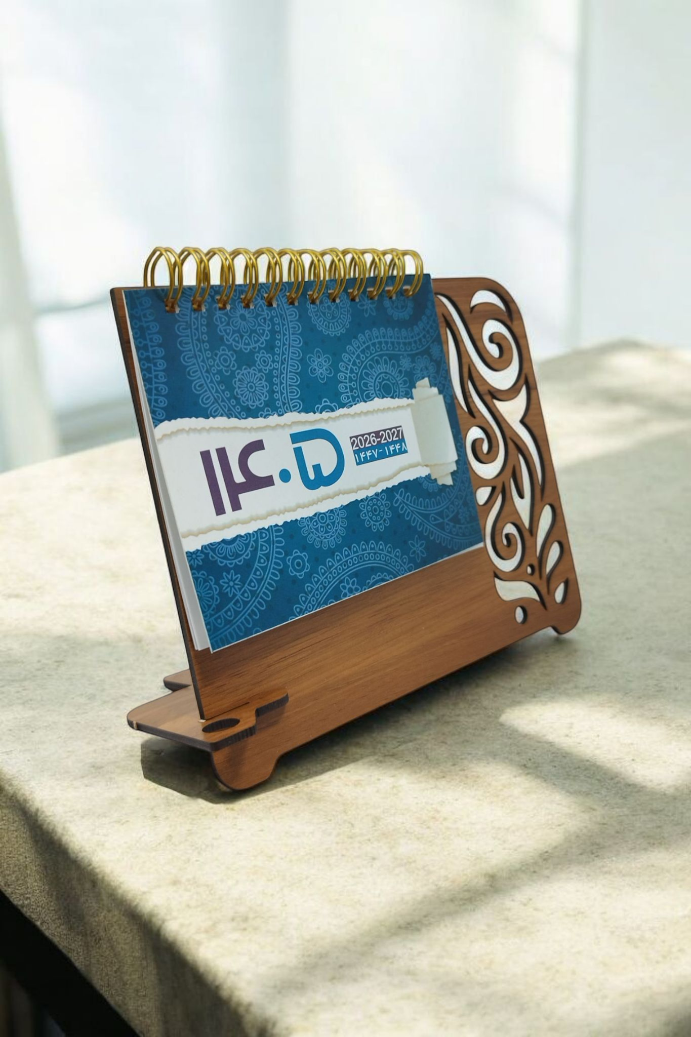 تقویم رومیزی پایه چوبی هلیا گیفت مدل ماهان