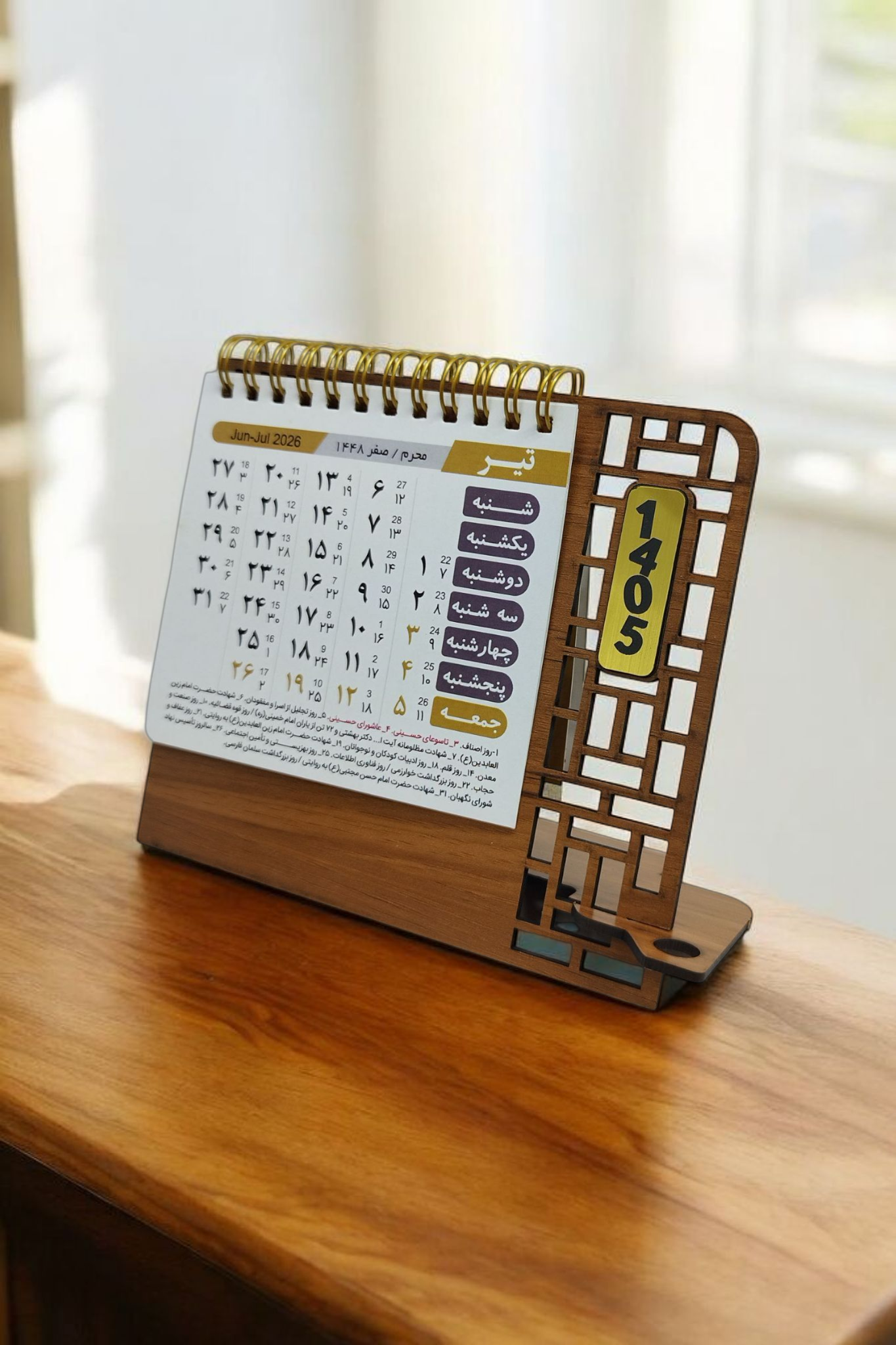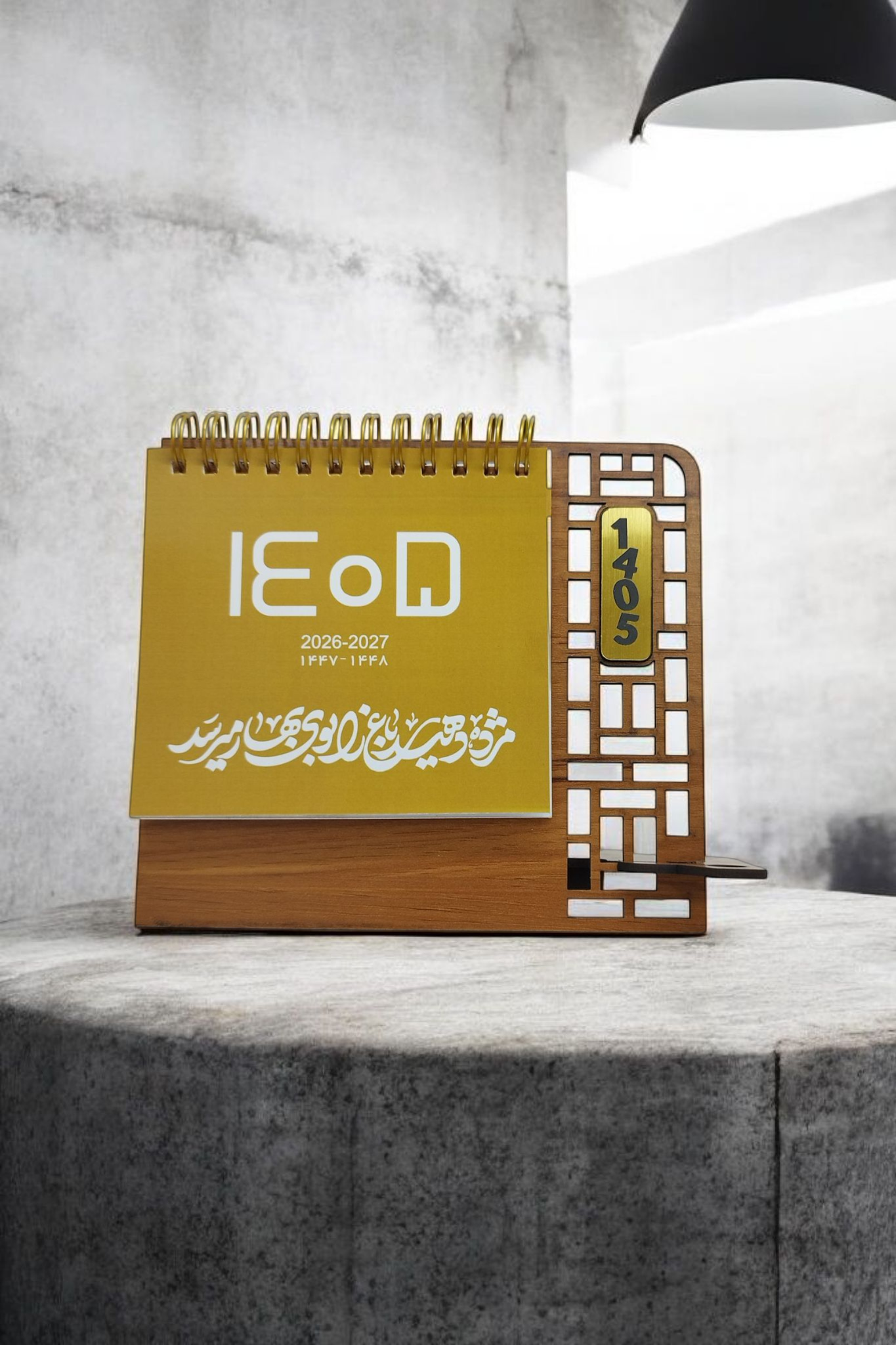 تقویم رومیزی پایه چوبی هلیا گیفت مدل مهیار